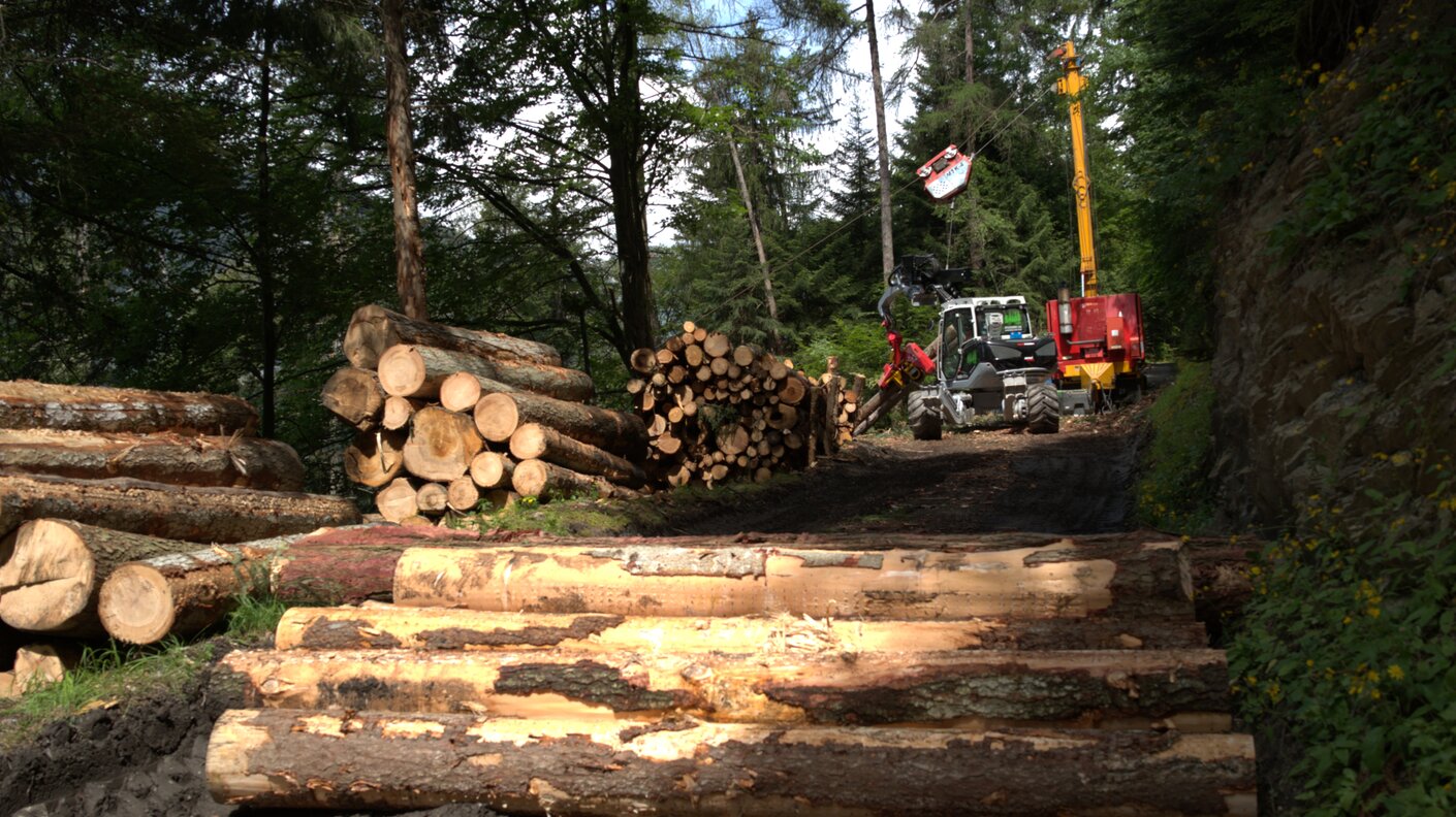 Forêt : Démonstration d'une exploitation forestière par câble grue :