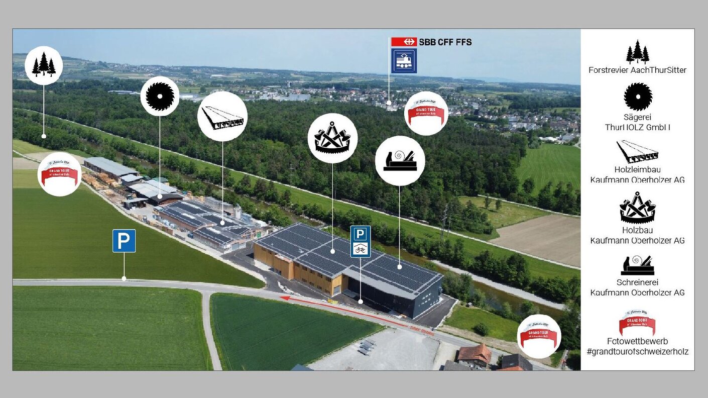 Im Cluster Buhwil sind die Betriebe Forstrevier AachThurSitter, ThurHolz GmbH und Kaufmann Oberholzer AG vertreten. Sie bilden die Holzwertschöpfungskette vom Wald bis zum fertigen Bauwerk ab. Das Angebot richtet sich an ein breites Publikum. Mit Führungen durch den Wald, das Säge- und Hobelwerk sowie die Leimholzproduktion und das Abbund- und Elementwerk bringt das Team des Kompetenzzentrums Holz sein Schaffen den Besuchenden näher.
