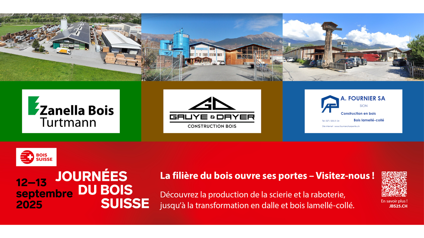 Le regroupement d'entreprises du Valais central, a le plaisir de vous accueillir les 12 et 13 septembre sur ses trois sites. Venez découvrir les nombreuses étapes de transformation du bois entre la forêt et l'objet en bois. Les professionnels du bois locaux vous feront découvrir tous les secrets du bois!