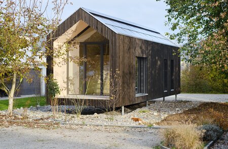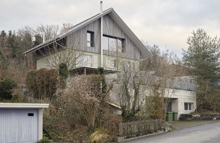 Minimalistisches Wohnen mit dem Brunner-Konzept. Fassadenverkleidung in Schweizer Weisstanne.