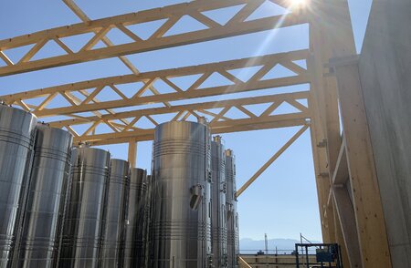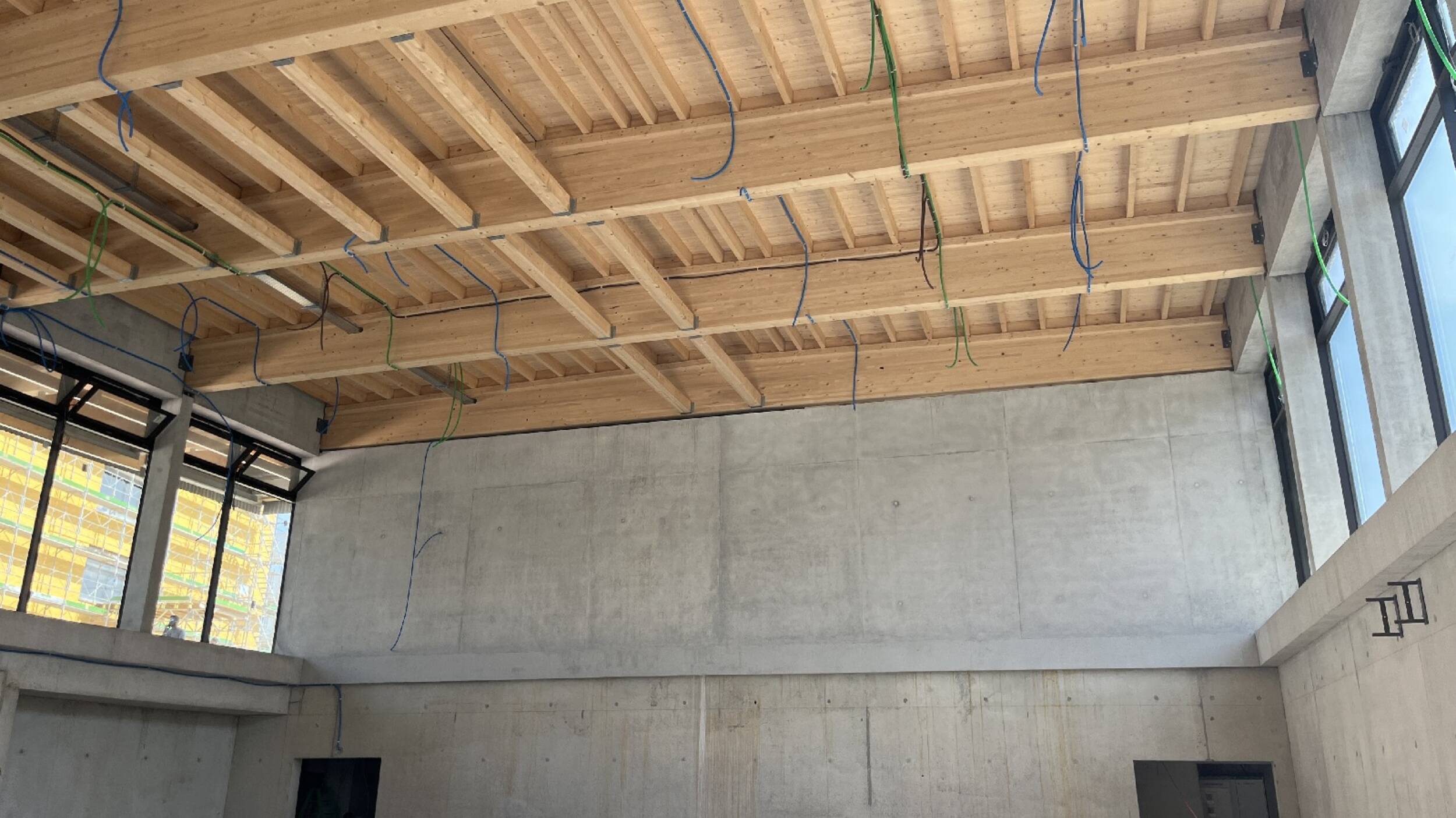 Fourniture et pose de halles en structure bois, plancher bois collaborant bois-béton, façade bois préfabriquées et murs ossature bois.